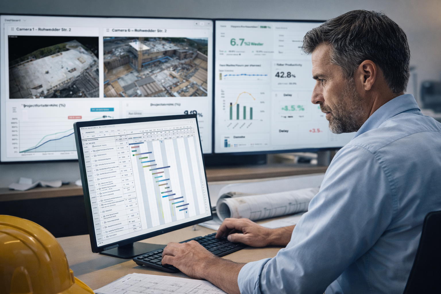 Die gewonnenen Daten bilden die Grundlage für einen automatischen Soll-Ist-Vergleich mit dem Terminplan. Abweichungen, Stillstände oder Verzögerungen werden frühzeitig sichtbar und können gezielt adressiert werden. Für Bauleiter und Projektleiter bedeutet dies eine deutlich verbesserte Entscheidungsgrundlage. Statt auf Schätzungen oder zeitverzögerte Berichte angewiesen zu sein, stehen aktuelle und nachvollziehbare Informationen zur Verfügung.
