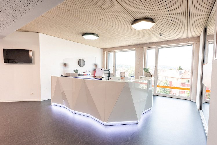In diesem nachhaltigen Bauprojekt haben bereits Büros, Praxen und Co-Working-Spaces ihren Standort gefunden. Die gut sichtbaren best wood BSH – Decken im Akustik-Design verleihen den Räumen eine einzigartige Arbeitsatmosphäre. Die lasierte Brettschichtholzdecke in zartem Weiß beeindruckt mit ihrem zeitgemäßen Design und stellt gleichzeitig ein visuelles Highlight in allen Innenbereichen dar.