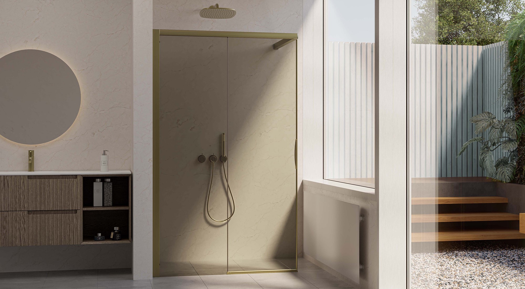 Das raffinierte Design, die intuitive Technik und die maximale Anpassungsfähigkeit sorgen für ein individuelles Duscherlebnis. Und das neue Bronze Glas, in Kombination mit den Pearl Farben schafft ein außergewöhnliches ästhetisches Ergebnis.