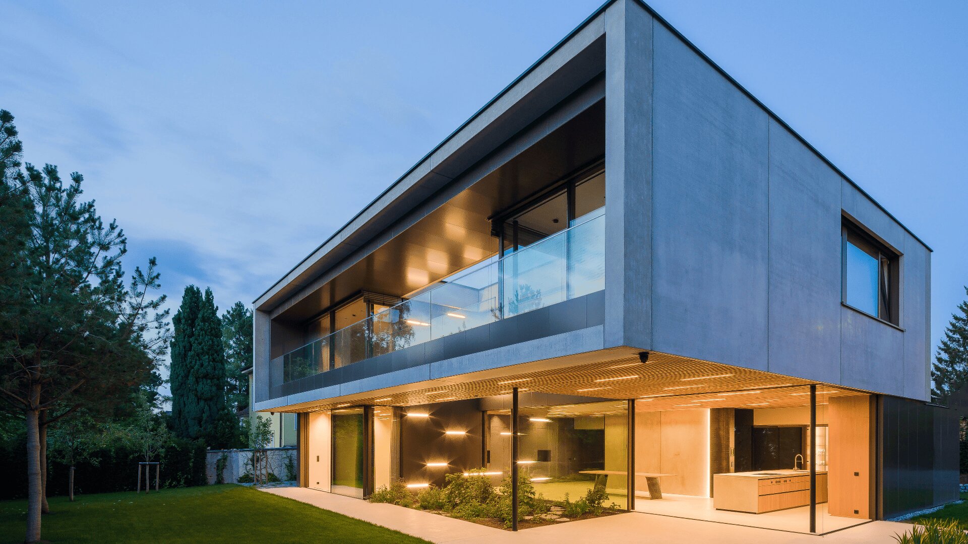 Minimalistische Eleganz aus Beton, Holz und Glas