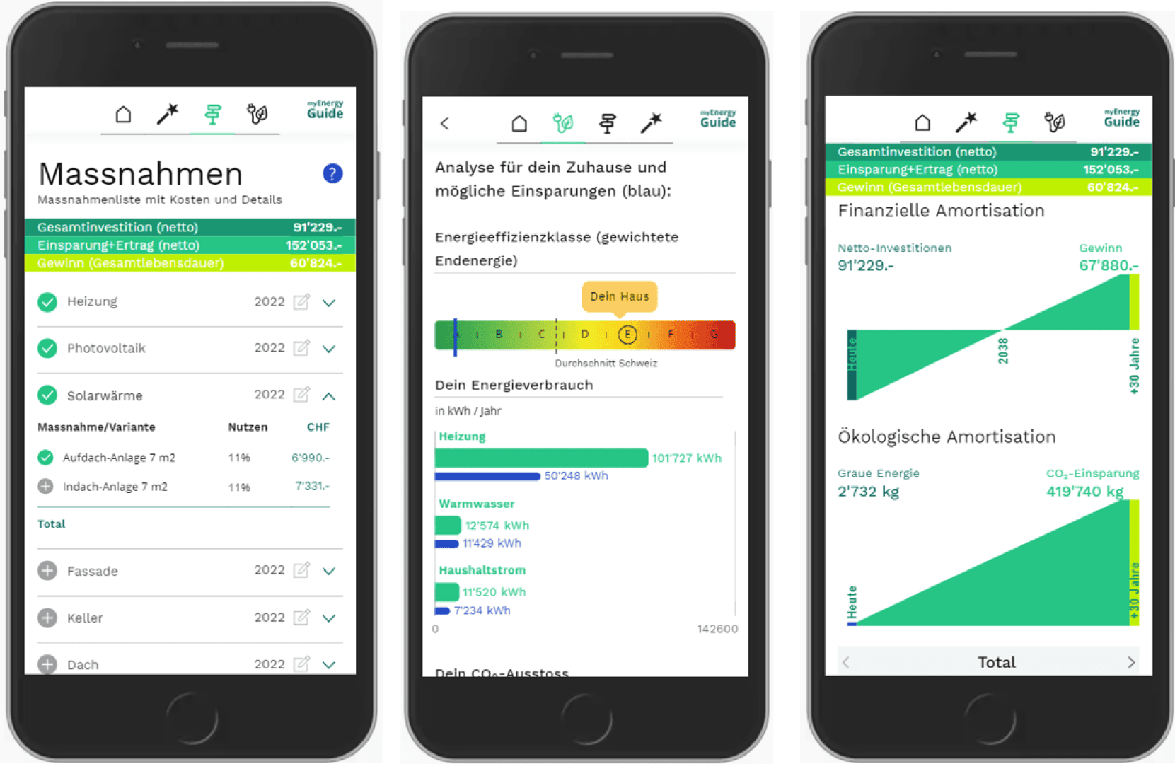 Innert Sekunden simuliert das Tool gegen 100 Energieszenarien. Die Zielaspekte können gewichtet, Lösungen favorisiert oder ausgeklammert werden. Anhand des Lebenszyklus der Gewerke können Payback und Budgetplanung feinjustiert werden.