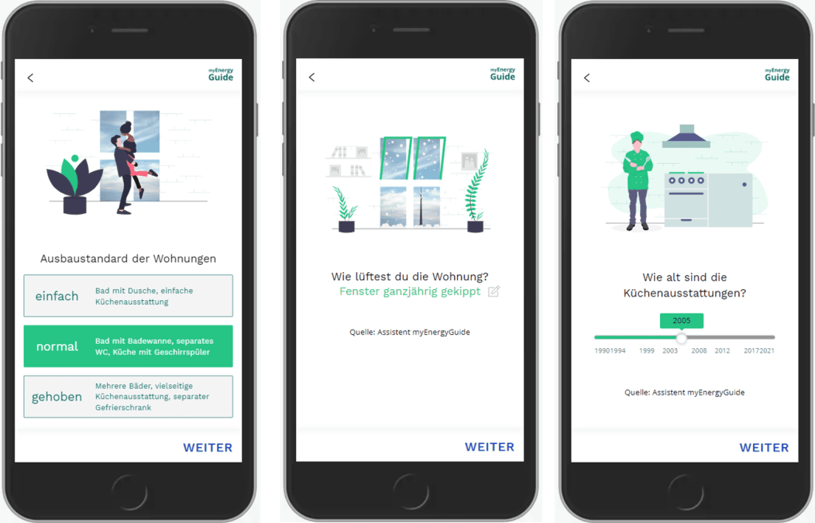 In der Ist-Analyse erstellt das Tool mithilfe von über 20 GIS-Quellen einen «Digitalen Zwilling» mit Nutzungsprofilen, Haus- und Gebäudetechnik. Aspekte wie die 3D-Geometrie des Gebäudes, lokale Energieressourcen und Gebäudenormen (aktuelle wie historische) werden dafür verwendet.