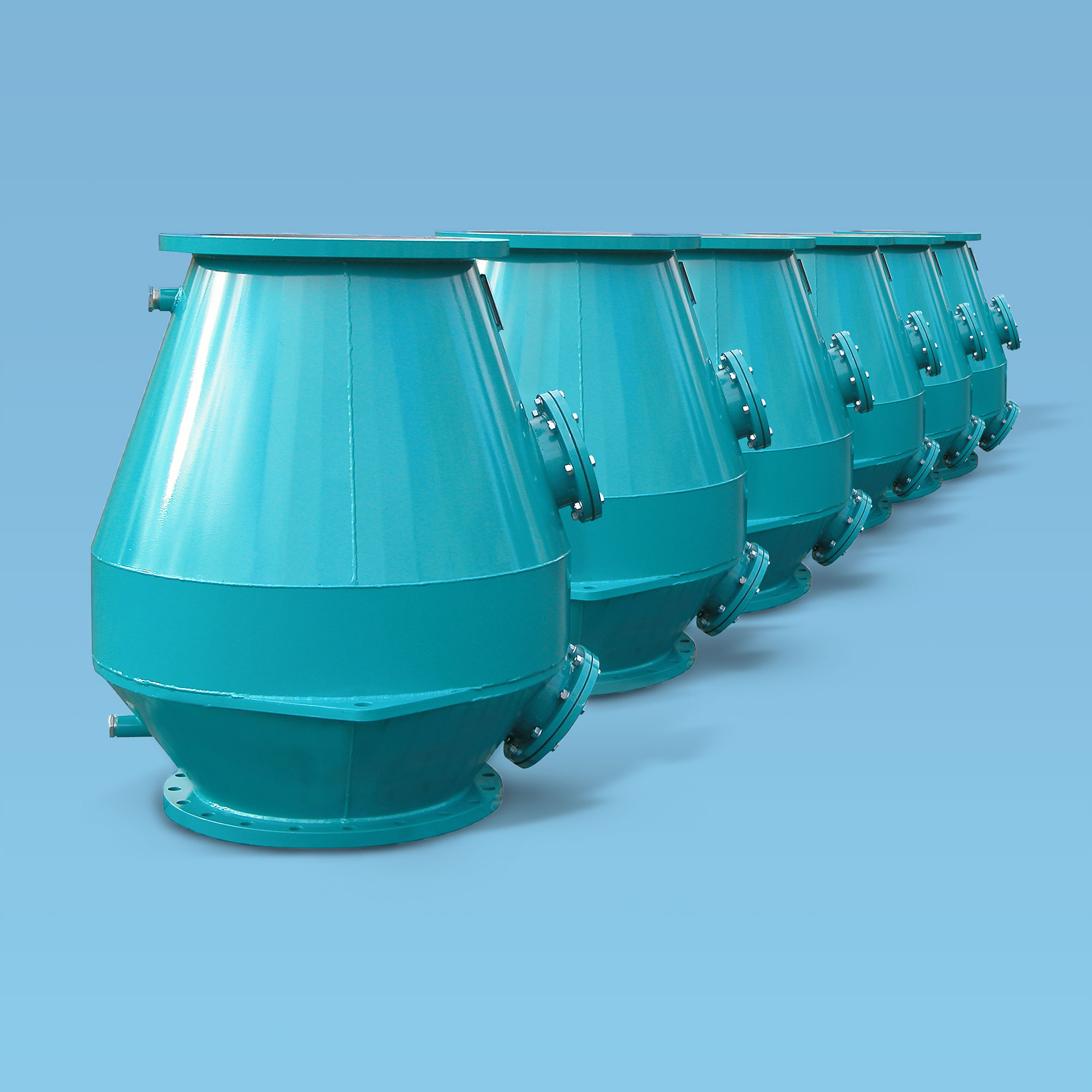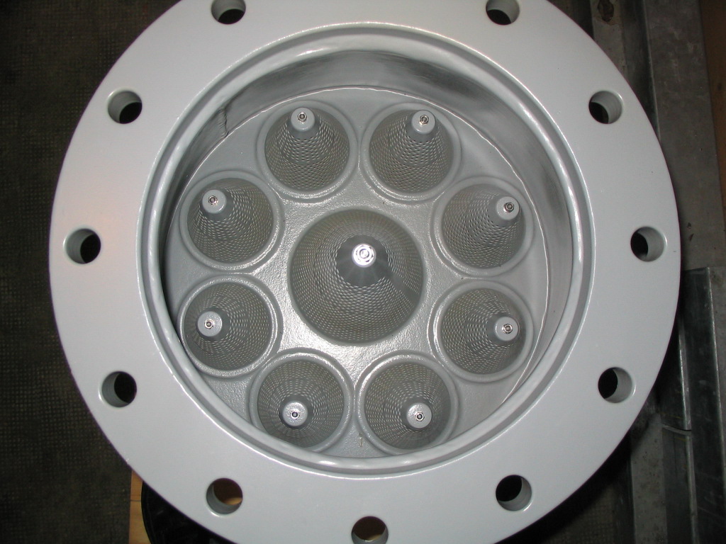 Ab Durchmesser 150 bis 600 werden Mehrkegelventile in Schweisskonstruktionen hergestellt. Es werden mehrere grössere und kleinere Kegelmembranen auf einer Mittelplatte angeordnet. Diese Mittelplatte ist in einem Gehäuse untergebracht Die Anzahl und Grösse der einzelnen Kegel wird durch den Durchflussbedarf bestimmt. Diese Ventile haben sehr gute Durchflusswerte. Die Fertigung des gesamten Bauteils erfolgt aus rostfreiem Stahl.