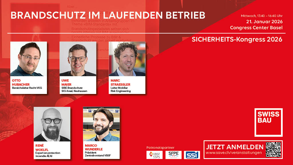 Vom 21. bis 22. Januar 2026 findet parallel zur Messe Swissbau erneut der renommierte SICHERHEITS-Kongress statt. In vier spannenden Halbtagesmodulen werden aktuelle Herausforderungen zum Thema Sicherheit behandelt.