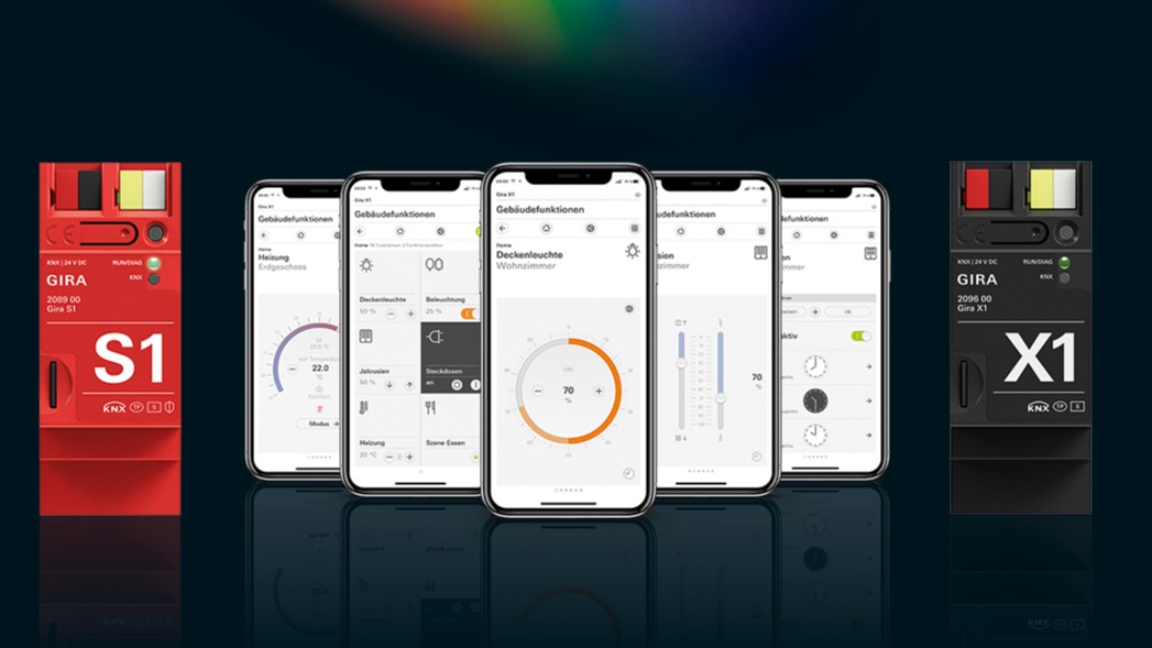 Gira bietet ein umfassendes KNX-Secure-Produktsortiment, das von Aktoren in der Verteilung bis zu den Bedienelementen im Raum reicht. Beliebt sind die Gira Tastsensoren 4.55 und Tastsensoren 4.95 in Bronze, Aluminium und Glas sowie das neue Touch-Display G1, welches zur Steuerung von Licht, Musik, Temperatur und Jalousien sowie für die Türkommunikation eingesetzt werden kann. Möchte man nicht die ganze Anlage mit KNX Secure verschlüsseln, empfiehlt es sich mindestens frei zugängliche Leitungen und Anschlüsse ausserhalb vom Gebäude wie Wetterstationen oder Bewegungsmelder über einen Gira Secure Koppler oder mit KNX RF Secure Funk abzusichern.