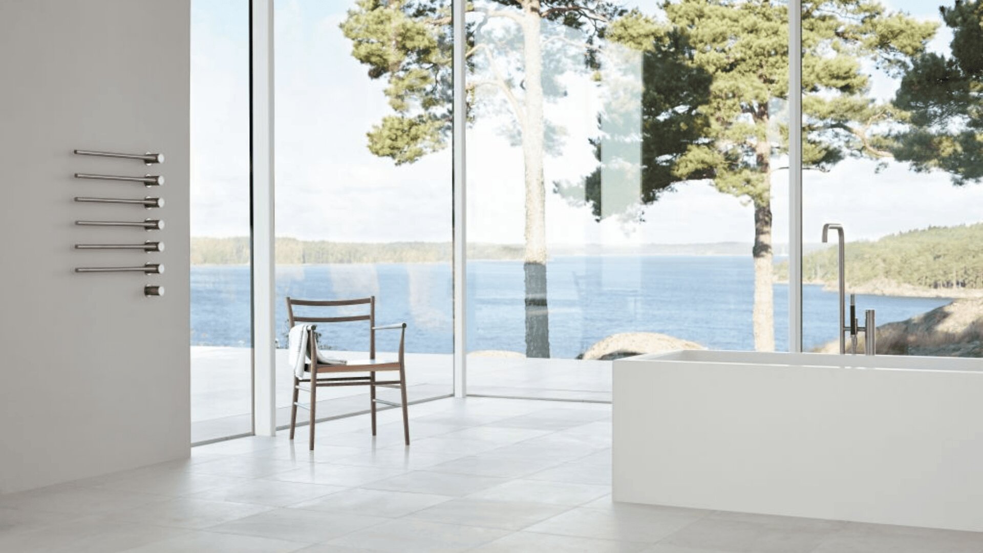 Der Handtuchwärmer T39 steht für ein Höchstmaß an skulpturaler Modularität, wie sie für VOLA typisch ist. Charakteristisch sind die minimalistischen, freitragenden Heizstäbe, die sich individuell anordnen lassen. Sie fügen sich perfekt in jede Badgestaltung ein und werten diese auf.
