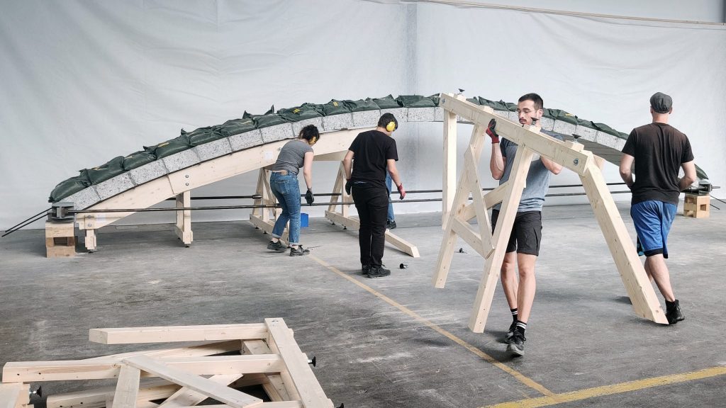 Aus Alt wird Neu: Die kleine Brücke über den Fluss «Morge» – zwischen Sitten und Conthey – ist ein Prototyp für die Wiederverwendung von Baumaterial. Sie dient Fussgängern vor Ort als provisorische Ausweichroute und nutzt dazu Betonstücke, die aus einer rückgebauten Hauswand gefräst wurden. Für den robusten Rundbogen wurden zwei Dutzend Betonplatten wiederverwendet; auch das Metallgeländer ist ein ReUse-Bauteil.