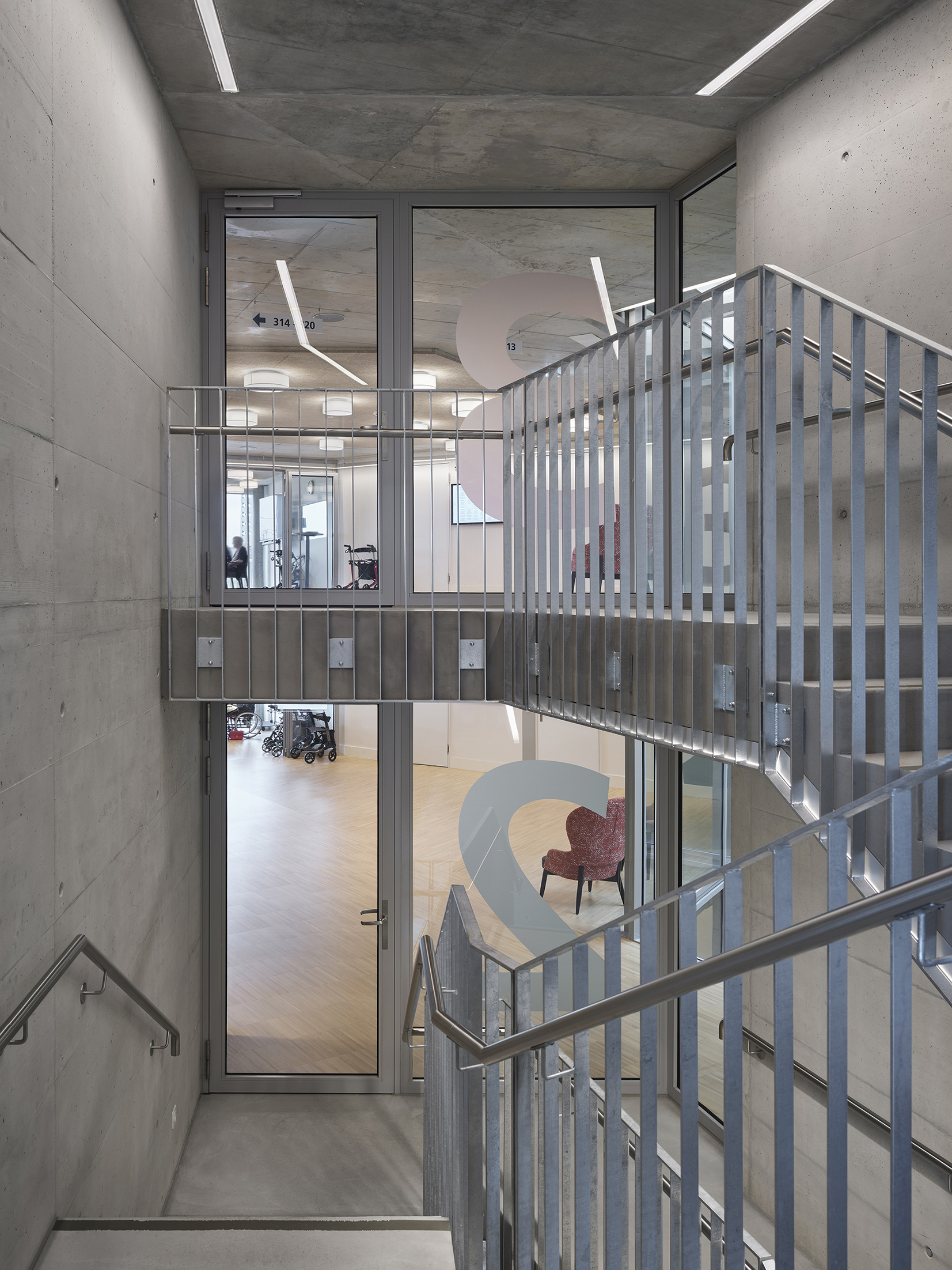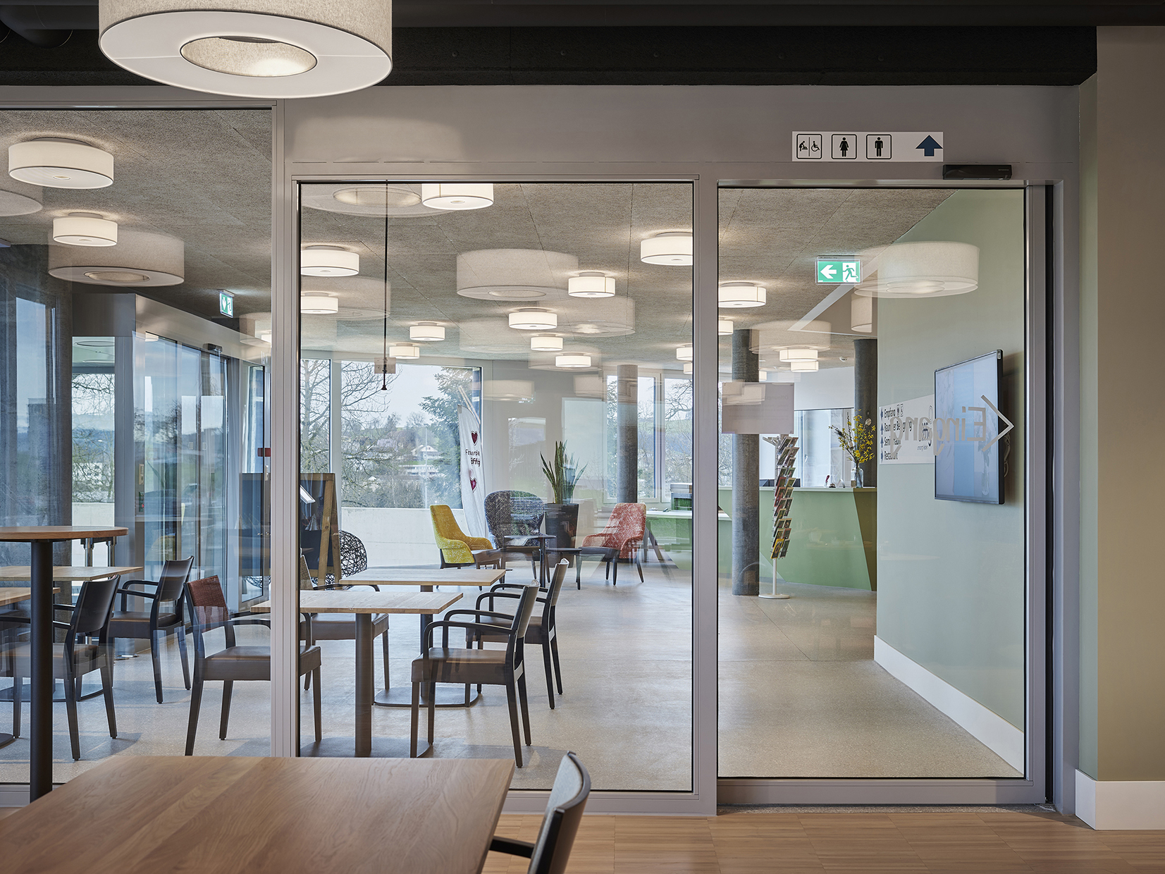 Neben 60 Pflegeplätzen und 14 Alterswohnungen bündelt das Zentrum verschiedene Dienstleistungen der stationären und ambulanten Gesundheitsversorgung unter einem Dach. Der nach den Entwürfen von MMJS Jauch-Stolz Architekten entstandene Neubau verbindet helle, einladende Räume mit klarer Funktionalität. Ein offenes Raumkonzept und eine durchdachte Innenarchitektur schaffen eine harmonische Balance zwischen Wohnlichkeit und moderner Infrastruktur. Die eingesetzten Profilsysteme von Forster aus Stahl erfüllen dabei alle erforderlichen Ansprüche an Transparenz, Sicherheit und Barrierefreiheit.