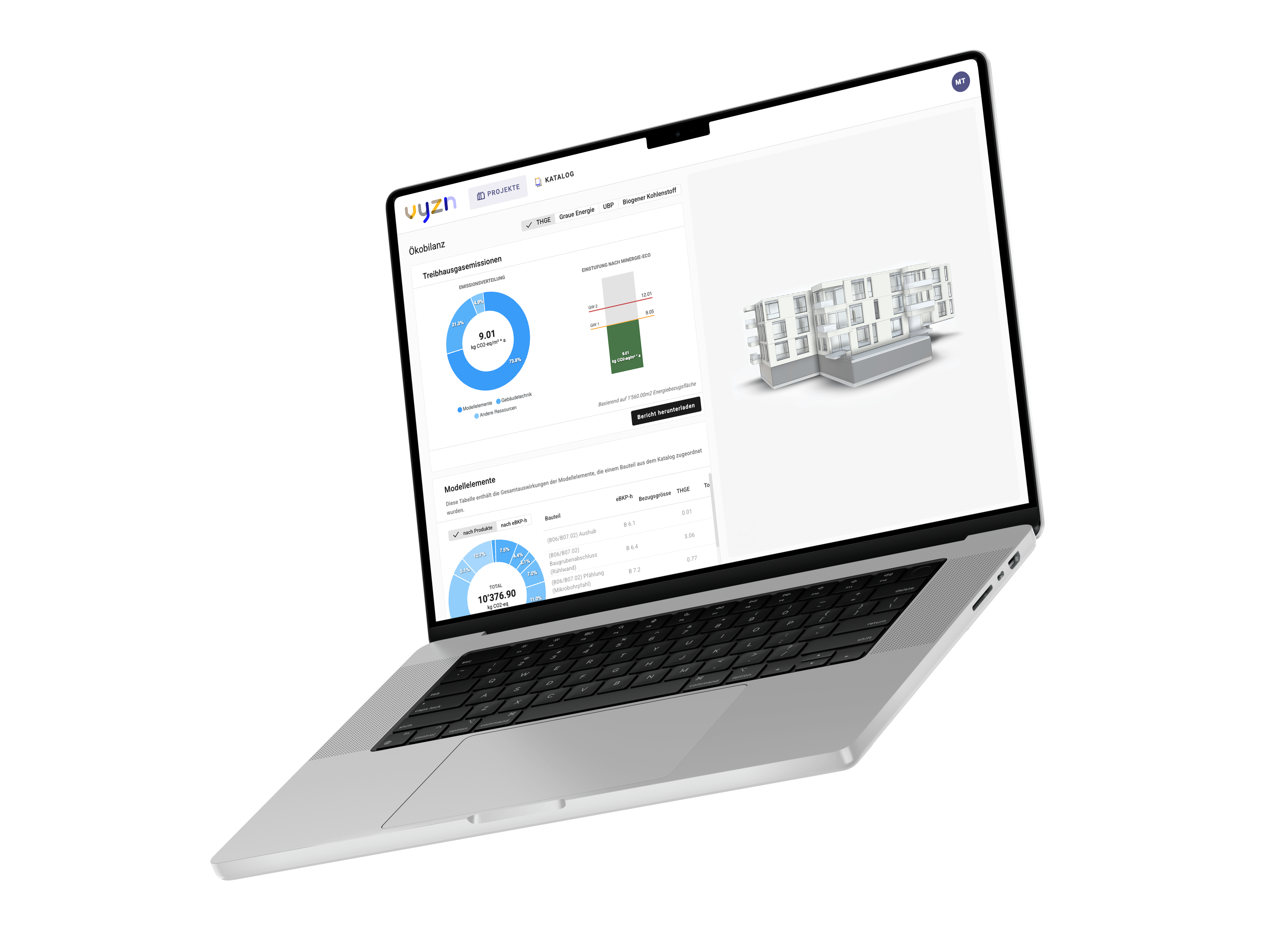 vyzn zeigt, wie Bauprojekte über alle Planungsphasen ganzheitlich optimiert werden können. Die Plattform bereitet BIM/3D-Modelle automatisch auf und ermöglicht die sofortige Analyse von CO₂, Energieeffizienz, Komfort, Kosten und Zirkularität.