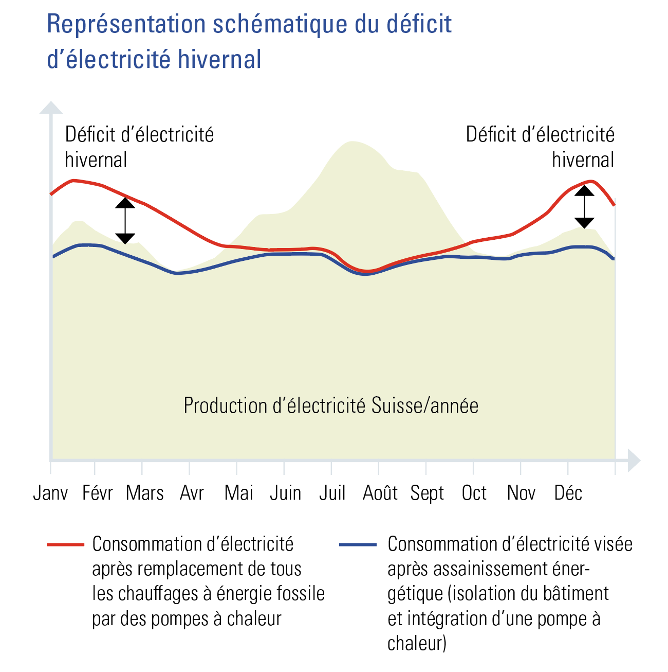 Il est aujourd’hui admis que près de 6 TWh d’électricité manqueront à l’avenir en hiver. L’assainissement des enveloppes des bâtiments est une solution simple qui présente une utilité élevée, puisqu’elle permet d’éviter de coûteuses importations d’électricité ou des mesures d’urgence telles qu’un contingentement. Outre ces économies d’énergie, elle augmente le confort d’habitation et fait baisser les coûts liés au chauffage.
