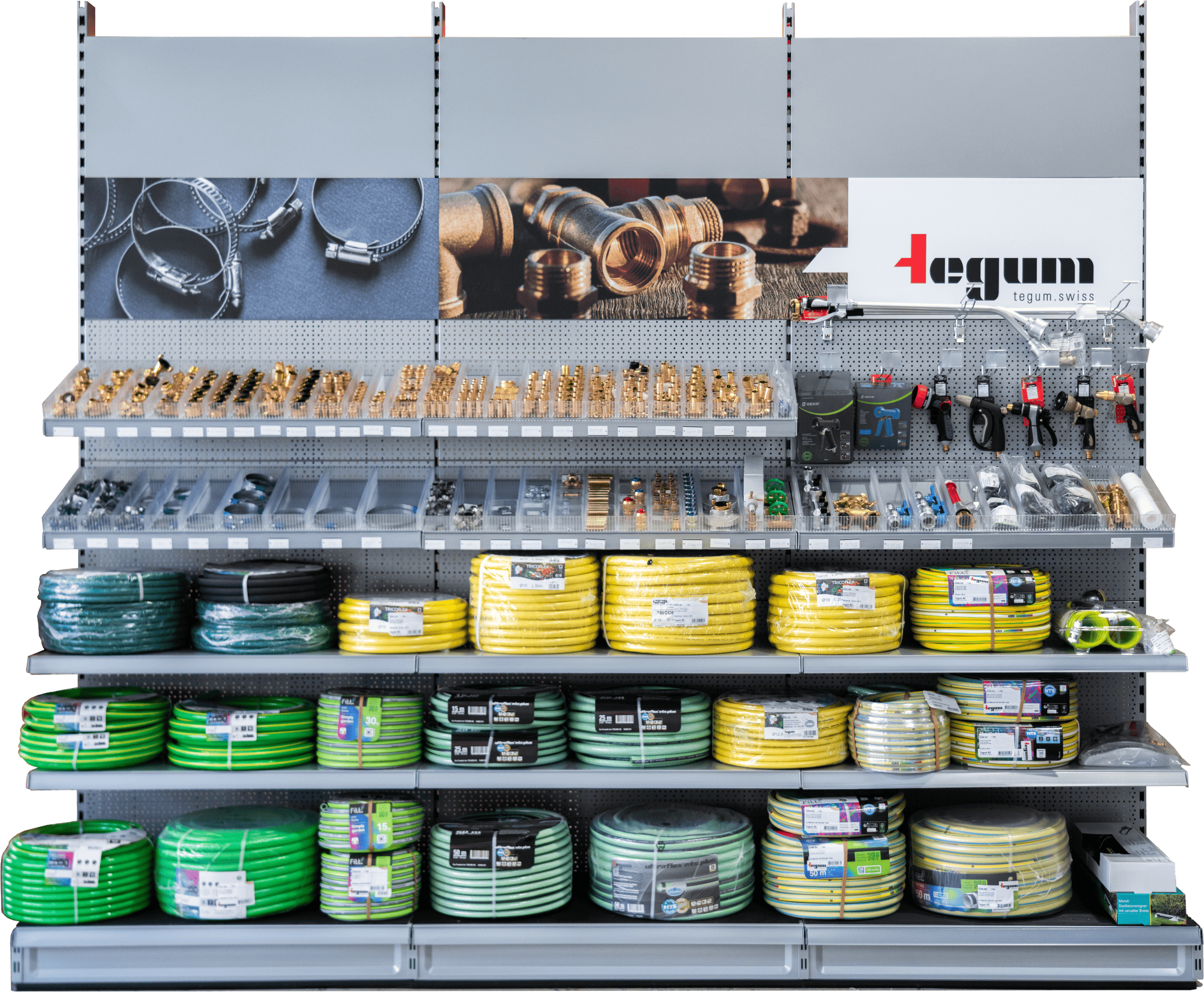 Le complément idéal pour une présentation parfaite de votre gamme de tuyaux et de composants : le concept d'agencement professionnel de Tegum AG